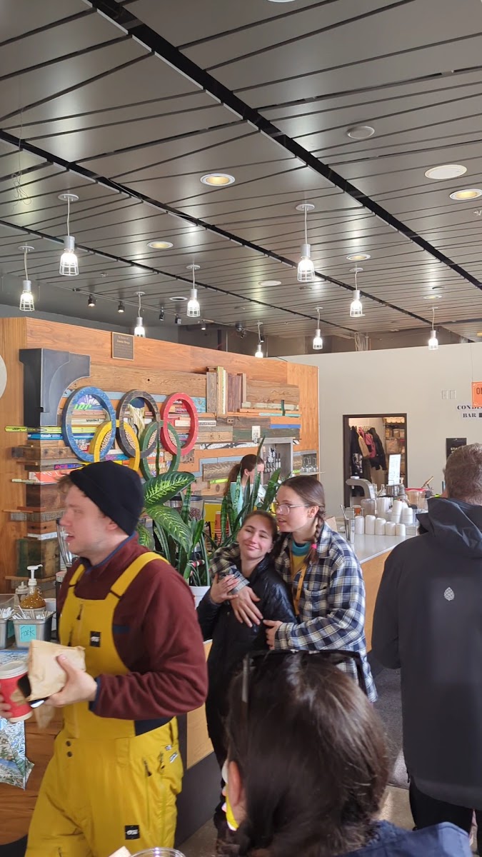 The atmosphere leans casual and comfortable, with both indoor seating and an outdoor area that catches the mountain views. On warmer days, many patrons choose to sit outside—some even bring their dogs—so it’s a relaxed spot to soak up the Sierra Nevada scenery while enjoying a brew. Early mornings and mid-afternoons seem to work best to avoid the small bursts of midday traffic, especially during ski season or summer weekends.